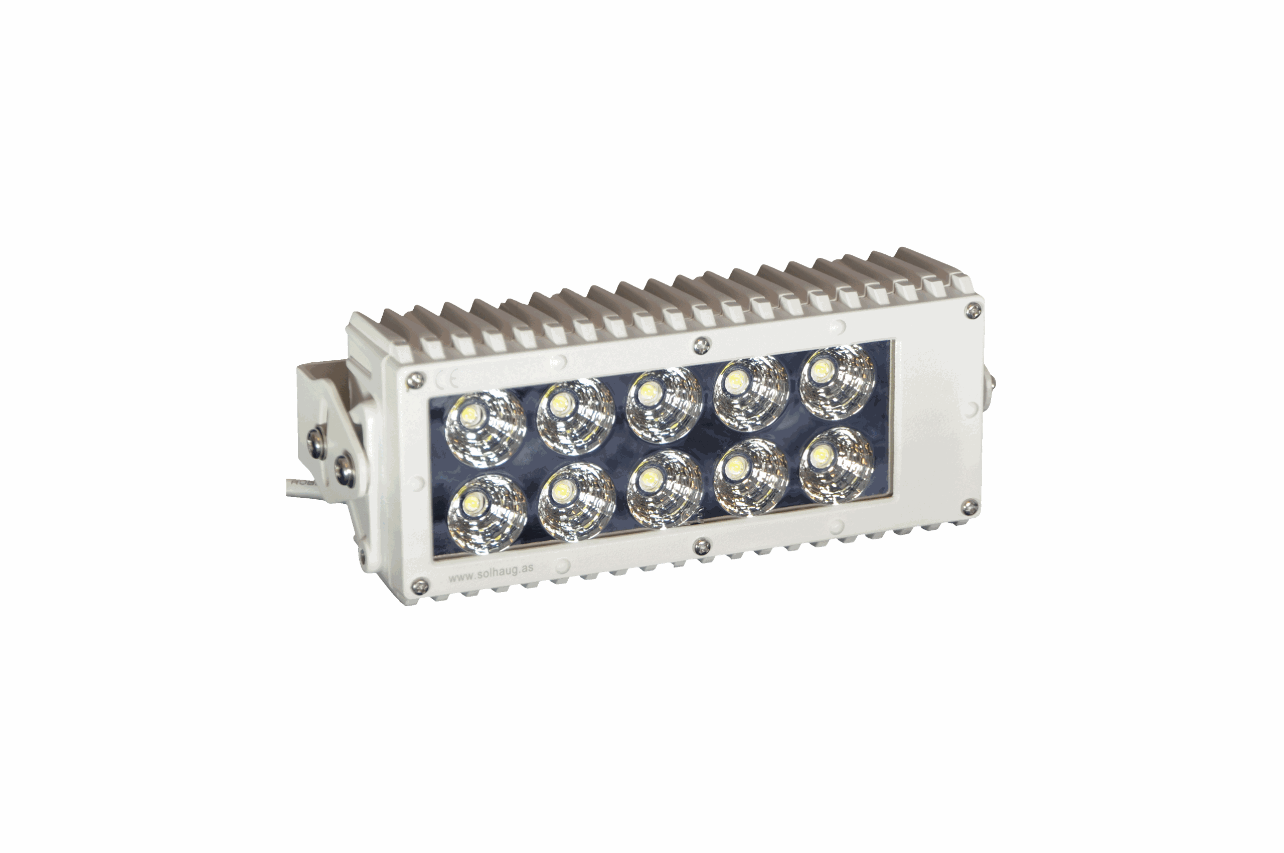 LED lys som gir et meget godt lys. Produsert i Aluminium, lakkert hvit og brakett i rustfritt stål. (Leveres med 1m kabel samt rustfrie bolter, mutrer og skiver)
