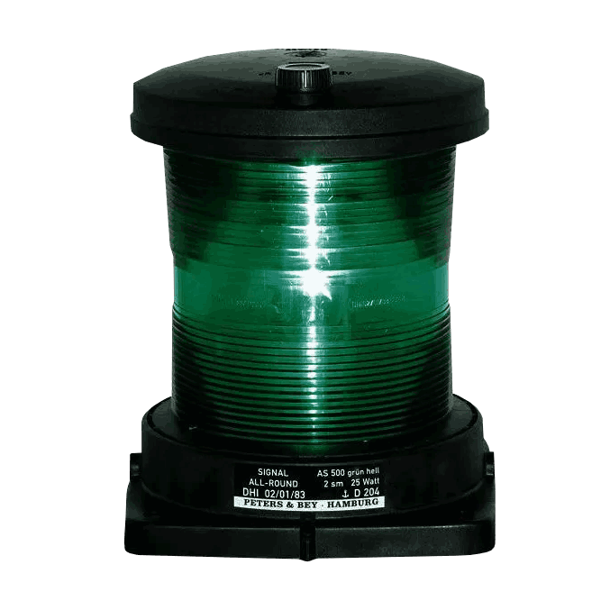 Sørg for at ditt fartøy er synlig og i henhold til regelverket med vår PB 500 360° Grønn-lanterne. Denne lanternen gir konstant grønt lys i alle retninger (360°), og er spesielt designet for skip under 50 meter. Med en klar og pålitelig glødelysplassering sikrer den trygg navigasjon og synlighet i mørket, og er et viktig element for sikkerhet og samsvar. 2nm.