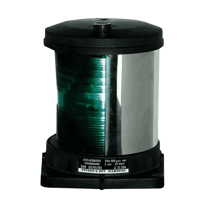 Gi skipet ditt pålitelig og autorisert navigasjonslys med PB 500 Styrbord-lanterne, designet for fartøy under 50 meter. Denne robuste lanternen med glødelys (glødepære) oppfyller kravene for ordinær styrbordlys og leveres med tydelig lanternerestasjon.