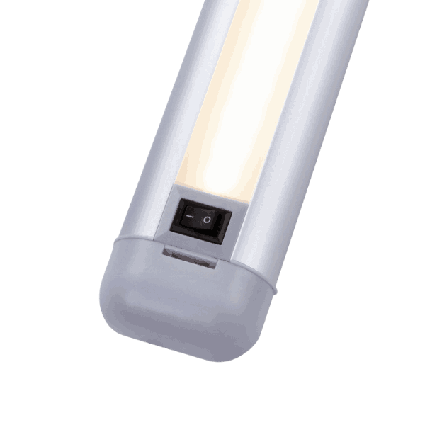 Armaturen har Dualvolt og tilpasser seg automatisk 12V eller 24V DC. Innebygget bryter gjør den enkel å slå av og på lokalt. Leveres for fast montering med skruer. Denne varianten er ikke dimbar.