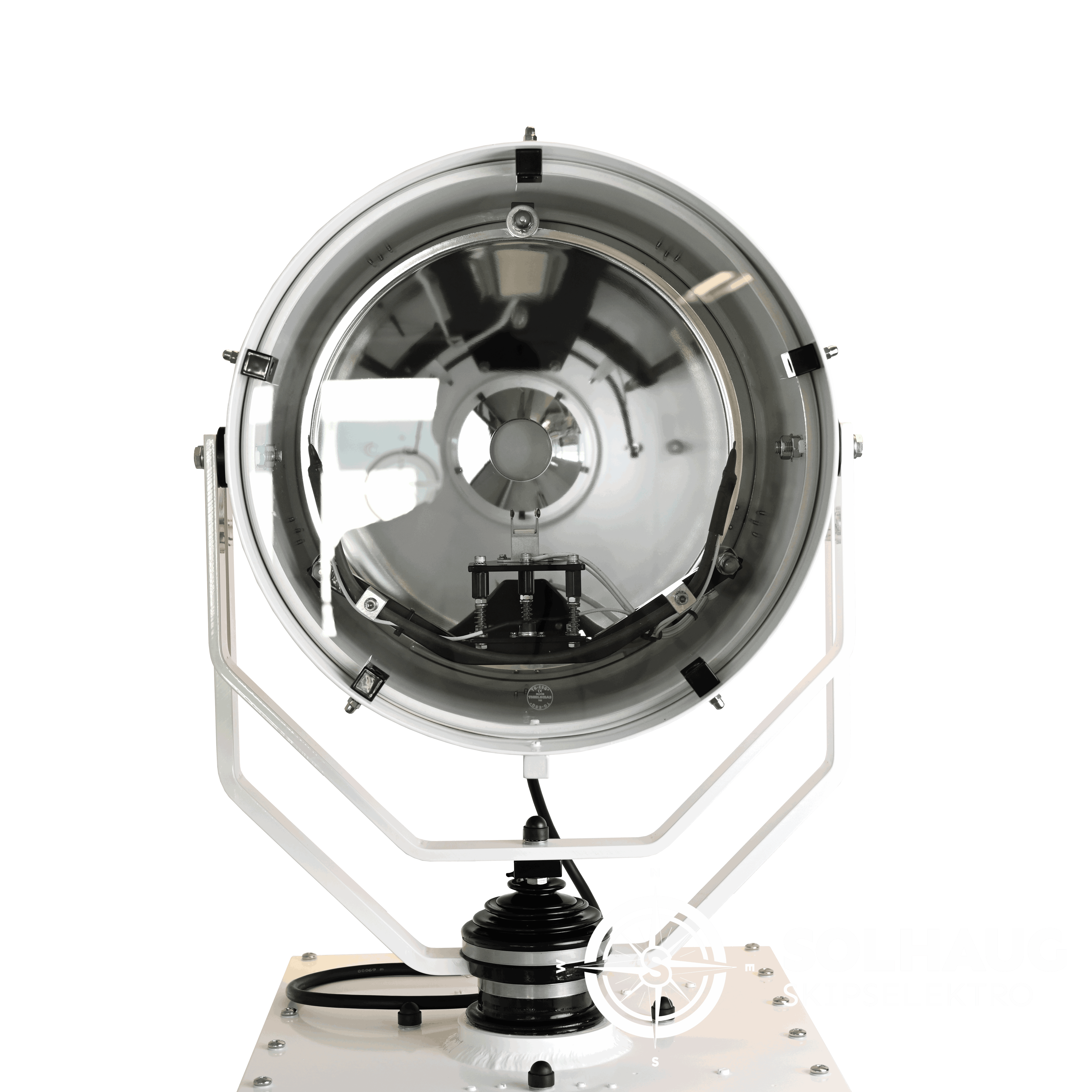 Denne fjernstyrte halogen lyskaster med 2 000 W effekt og 230 V drift kombinerer høy ytelse med robust maritim konstruksjon. Med termostatstyrt varmeelement i både hode og sokkel, fjernstyringspanel, og enkel utskifting av lyskilde underveis, er den utviklet for krevende maritime forhold. Den leveres komplett med lyskilde, kabel og joystick-panel.