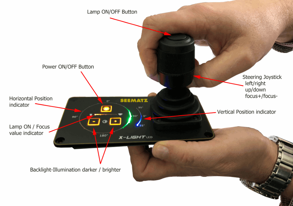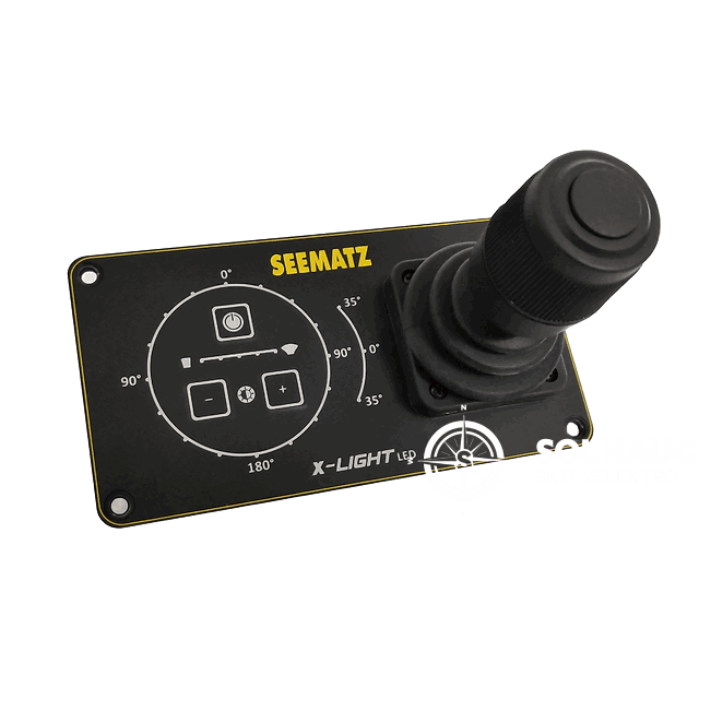 Seematz X Light 24V gir ekstremt god belysning med 160W LED-cluster og drift på 24V DC — perfekt for fartøy som krever høy ytelse med lavt strømforbruk. Den kompakte søkelyskonstruksjonen leveres med variabel strålevinkel (4°-12°), og med 360° rotasjon og ±30° vertikal bevegelse for presis styring. Kontrollpanelet gjør betjening enkel og intuitiv.