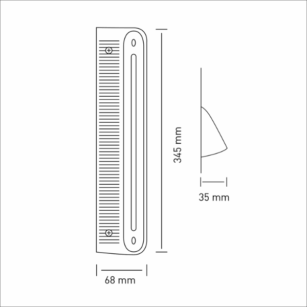Dimensjoner: 345 x 68 mm (byggehøyde ca 35 mm)