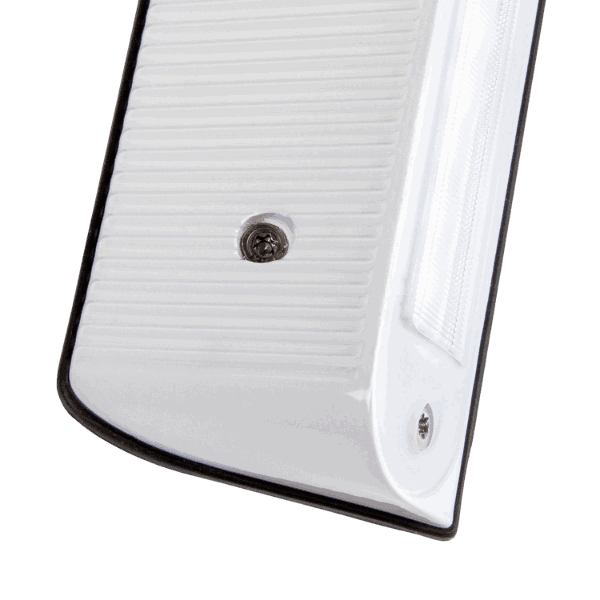 Solid og kompakt arbeidslampe for montering på flate (surface mount) i maritime miljø. Lampen leveres i hvit utførelse og gir et kraftig, klart lys (cool white) som passer godt i arbeidsområder, passasjer, tekniske soner og andre steder der du trenger driftssikker belysning i en robust utførelse.