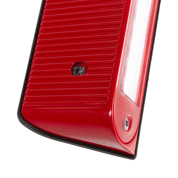 Solid og kompakt arbeidslampe for montering på flate (surface mount) i maritime miljø. Lampen har rødt hus og gir et kraftig, klart lys (cool white) som passer godt i arbeidsområder, passasjer, tekniske soner og andre steder der du trenger driftssikker belysning i en robust utførelse.