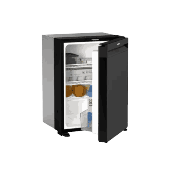 Moderne utseende på utsiden, energisparende kompressorteknologi inni: dette kompakte kjøleskapet gir deg 32 l kjølelager til maten. Det rammeløse sorte frontpanelet med komfortabelt håndtak i full bredde gjør et fint inntrykk i byssa eller kjøkken. Interiøret er redusert til det essensielle: to hyller i skapet, en flaskeholder i døren