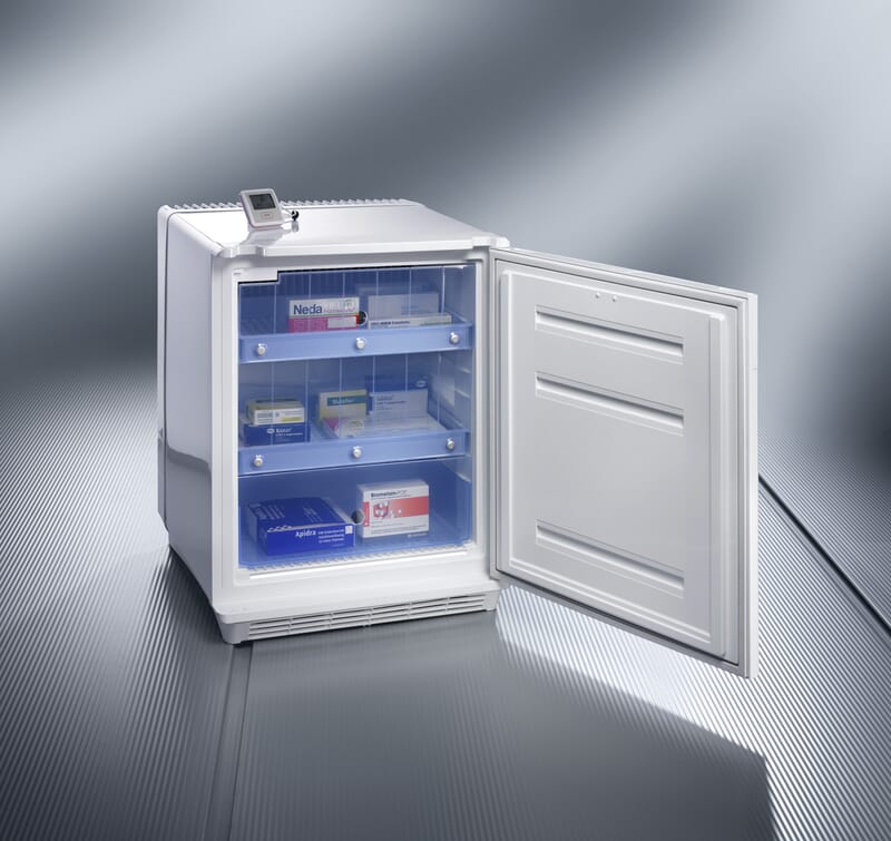 Skåler med transparent fremre bord for å holde innsiden fra varmes opp ved å blokkere gjennomtrenging varm luft inn i skapet når døren åpnes.