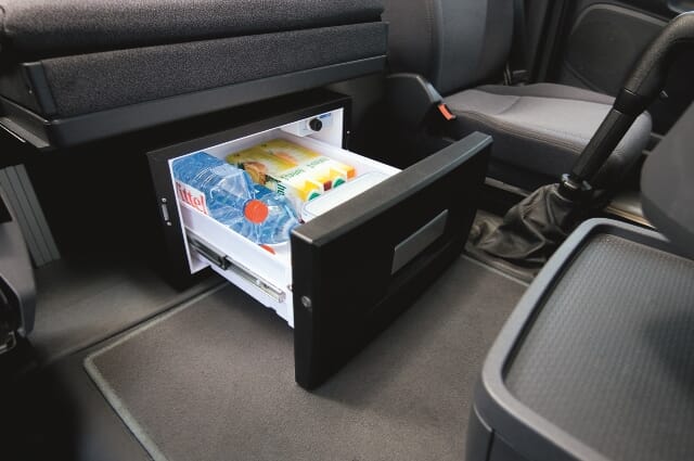 Kjøleskuff 12/24V for oppbevaringsrom inne og ute. Ideell for flybridgen. Enkel å trekke ut, sikker låsing.