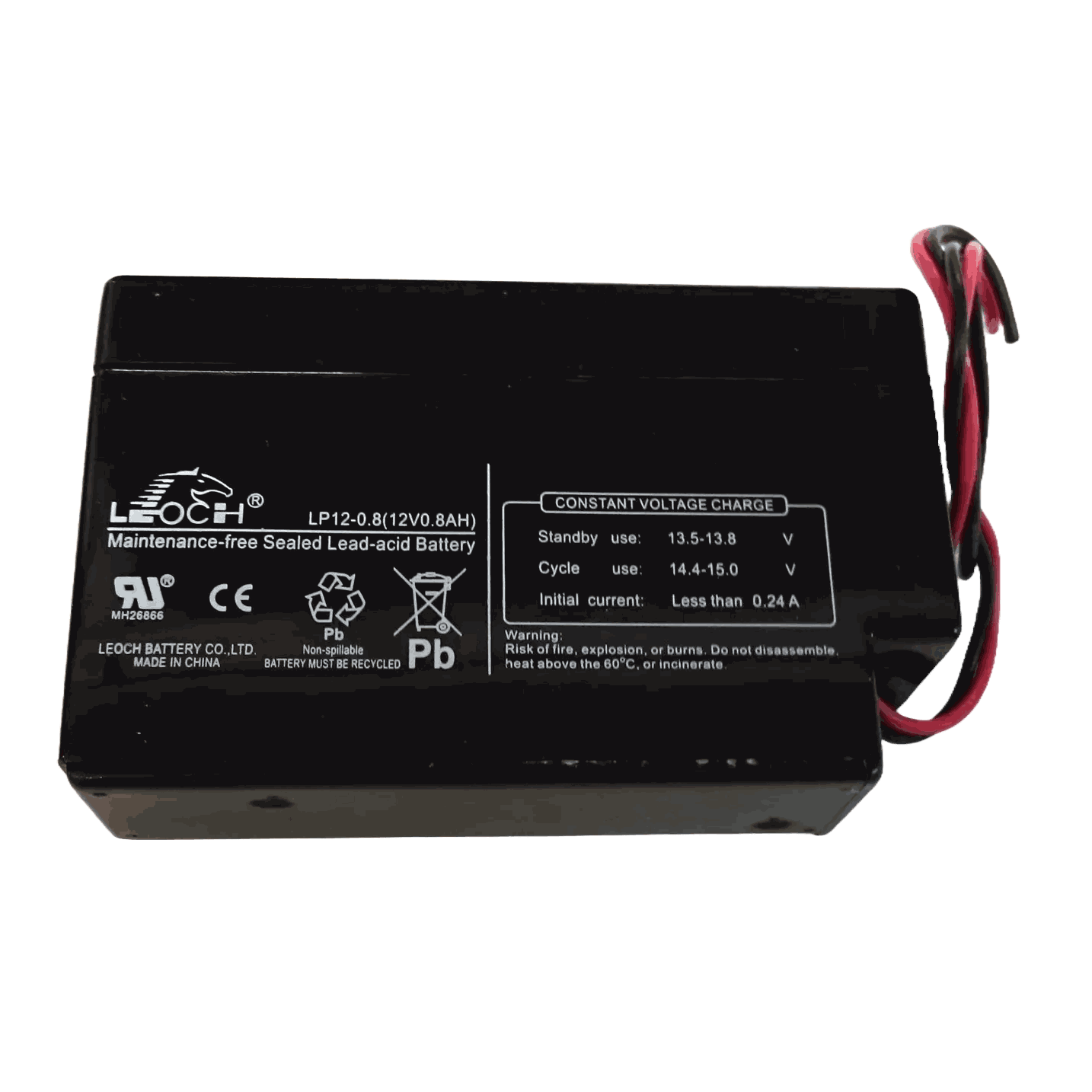Batteri backup til IFP sentral. (Vare nr 006.000025)Kapasitet: 0,8Ah Spenning: 12V Ytre mål i cm: L=9,5 H=6,0 H=2,5 Vekt i kg: 0,37