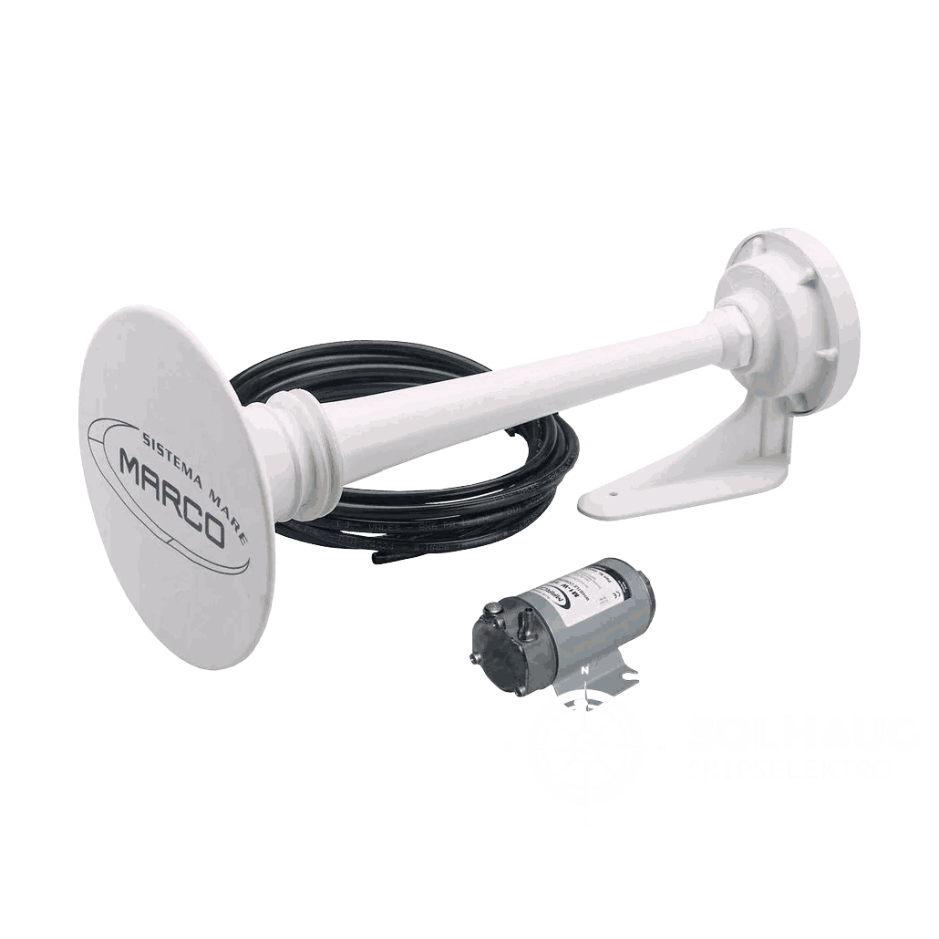 - Passer der man trenger et kraftig, godkjent horn med kompressordrift i røffe sjøforhold