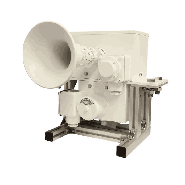- Kan monteres på dekk, mast eller baug-monterte posisjoner hvor god lydspredning er kritisk