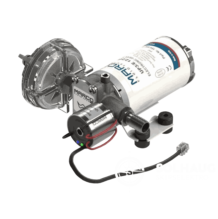 Denne trykkvannspumpen er utviklet for maritime vannforsyningssystemer og fungerer på både 12 V og 24 V. Med elektronisk styring gir den jevn vannmengde til forbrukere om bord – som dusj, servant eller teknisk forbruk – samtidig som den beskytter mot kjøring uten vann og overbelastning.