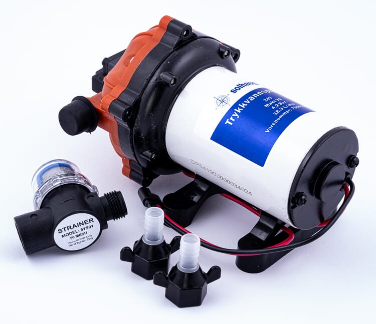 PowerPump PP2417 er en høyytelses 24 V trykkvannspumpe konstruert for større fritids- og arbeidsbåter med mange tappepunkter. Den leverer opptil ca. 189 liter vann per minutt og har automatisk trykkstyring som starter og stopper pumpen etter vannforbruk. Det robuste membrandesignet gir jevn vannstrøm og demper støy, noe som gjør den ideell som hovedpumpe i større ferskvannsanlegg.