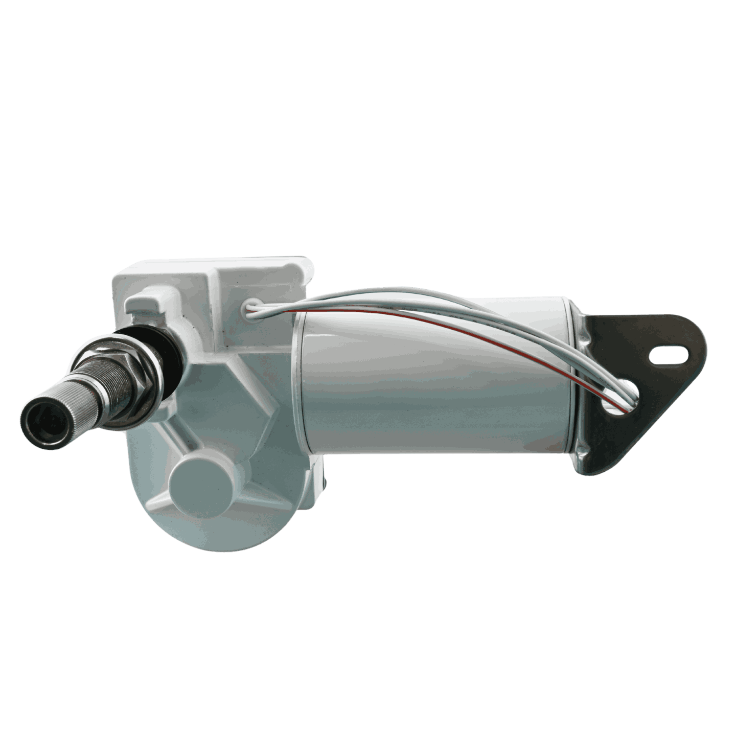 Denne vindusviskermotoren i 24V DC med stamme på 52 mm og 2-polet utførelse er designet for robust bruk i maritime miljøer. Den leveres med høyrestopp fra fabrikken, selvparkeringsfunksjon, og justerbar slagvinkel (45° / 60° / 80° / 110°). Motoren har to hastigheter (35 og 55 slag/min), og stamme og monteringsplate i rustfritt stål for lang levetid ved sjøbruk.